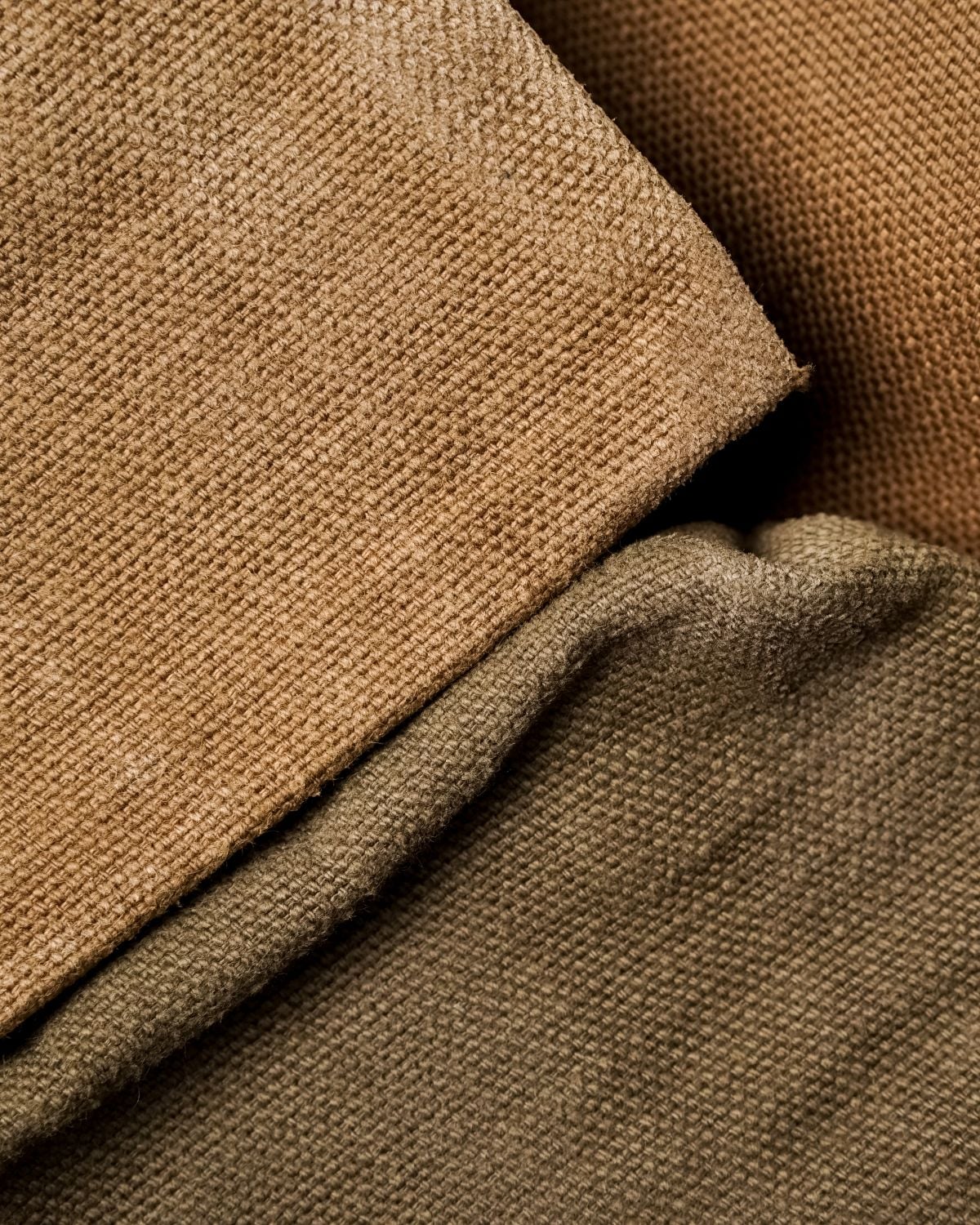 岡山県井原市に拠点を置き国内屈指の品質と長い歴史を誇るデニムファクトリー、クロキ社が深い知見と経験によりリプロダクションしたコットンダック生地を使用。ミリタリーとワークテイストを融合させた独自の風合いは、本物のデッドストックを凌駕するほどの質感とヴィンテージ古着のような経年変化を愉しめます。