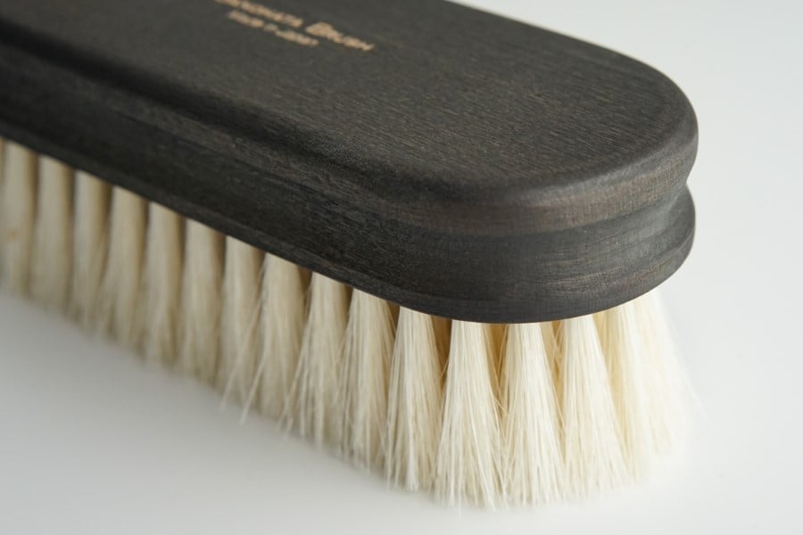 馬毛の中でも特に柔らかいたてがみを厳選して使用しています。たてがみはとても柔らかいため強く植えると毛切れを起こし、弱く植えると簡単に抜け落ちしてしまいます。この矛盾する要求を絶妙な職人技で両立させ高い耐久性を実現しています。