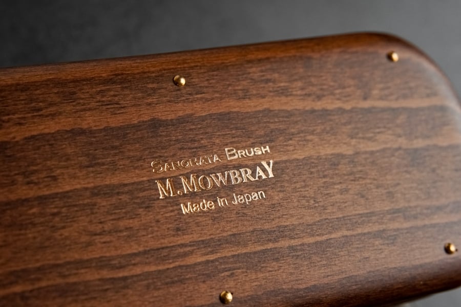 手植えは機械による植毛に比べ、毛切れや毛抜けが起こりにくく、長くブラシが育つのを愉しめる耐久性を備える製法。毛束を二つに折り引き線を巻きながら木部にあけた無数の穴にひとつひとつ差し込んで作られます。毛が切れず、なおかつ抜け落ちにくい繊細な力加減が求められ、大変な時間と技術を要する製法でもあるのです。