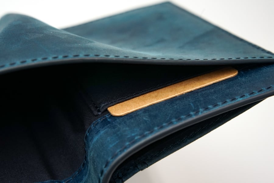 本体背面にある仕切りの内側にもポケットを装備。交通系ICカードを入れておけばパスケースのように使えます。