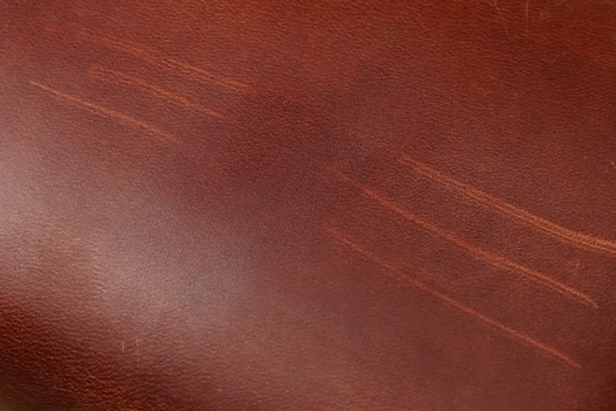 通常、革の傷は修復ができません。しかし、オイルをたっぷりと含んだオイルドレザーは、傷がついても磨きあげることで傷が馴染みます。磨くことで革に含有するオイルが表面に浮き出て筋跡を平らにし、傷が目立たなくなります。
