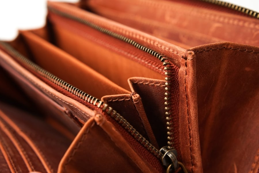 開口部が大きい小銭入れは仕切り付きで仕分けも便利。