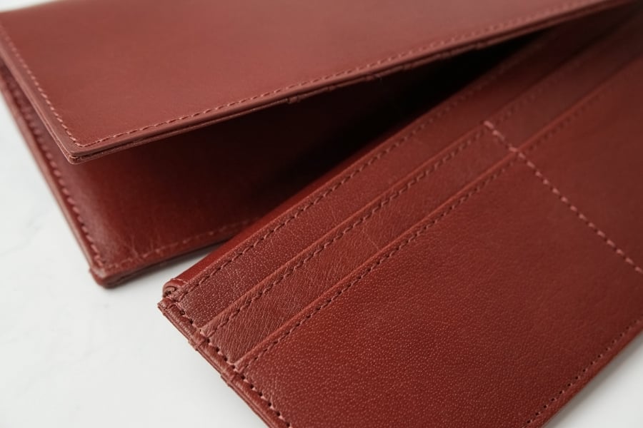 ワイルドなイメージのあるバッファローですが、熱とプレスで滑らかに仕上げ透明感のある光沢を与えることで上品な仕上がりに。実用性も高く、使うほどに味わい深く風合いを増していきます。