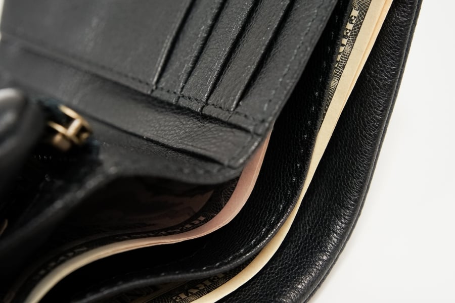 お札の種類やレシートを分けたりするのに便利な2層構造。海外旅行の際には現地通貨との仕分けにも使えます。