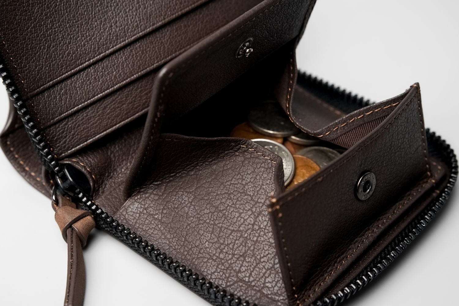 小銭入れは大容量で見開きの良いボックスタイプ。小さなスペースでも取り出しやすく十分な容量を確保しています。