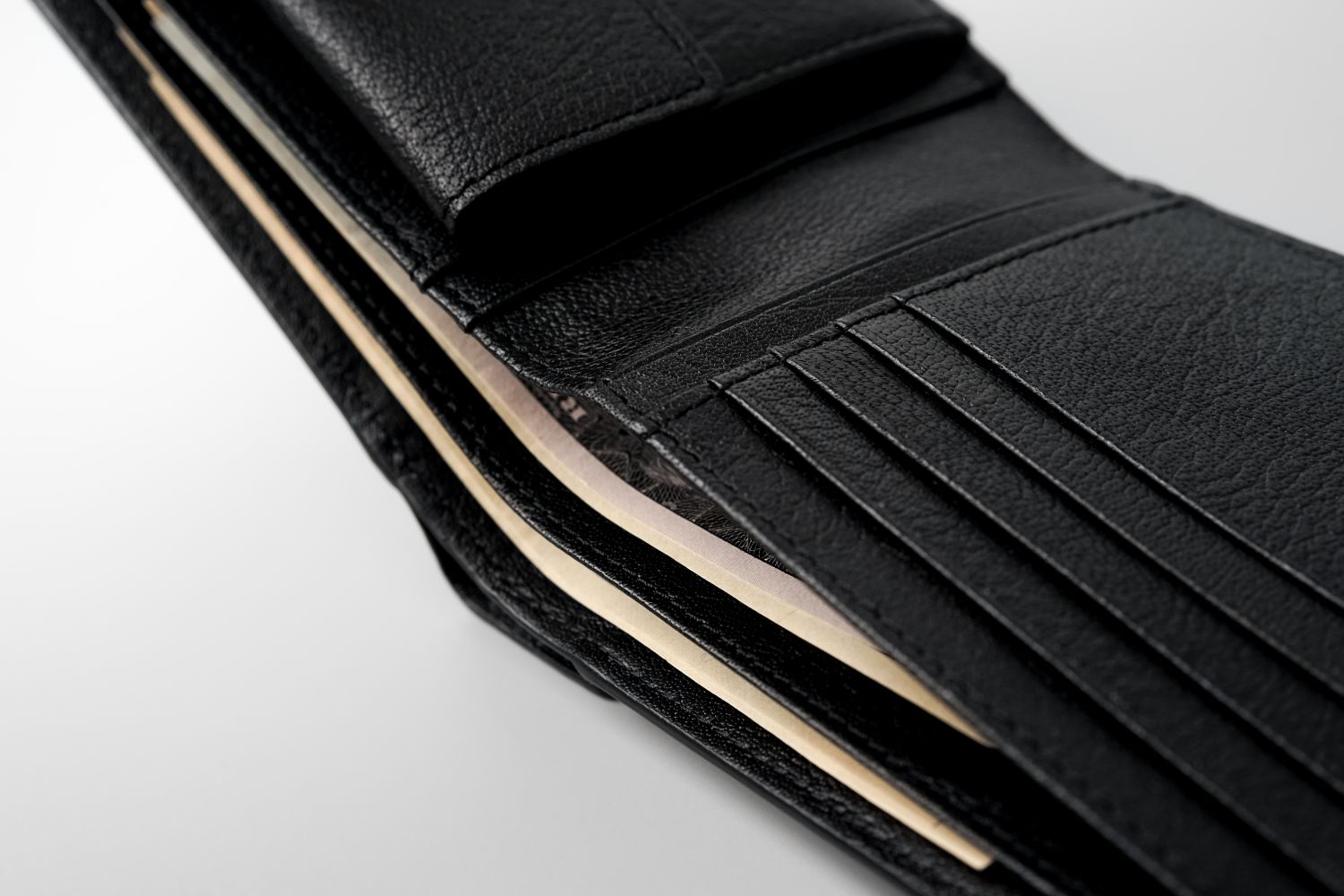 お札の種類やレシートを分けたりするのに便利な2層構造。海外旅行の際には現地通貨との仕分けにも使えます。