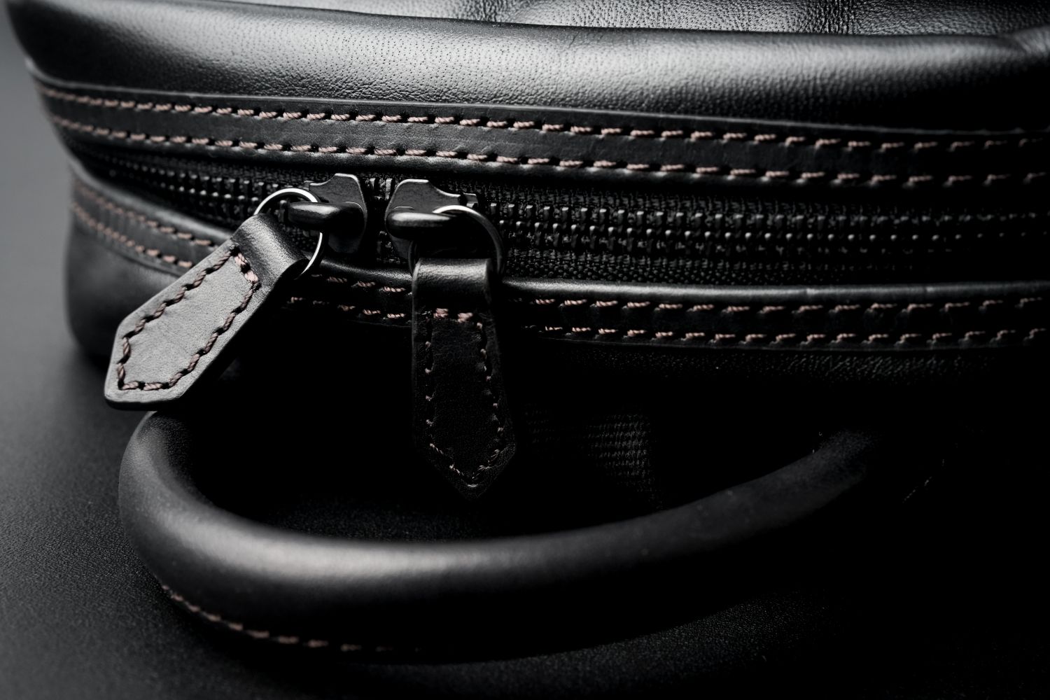 要所には厚口オイルドレザーを附属。3mm厚のヌメ革に手塗りで何度もオイルを塗りこむことにより、奥行きのある豊かな表情が生まれ革の耐久性を高めています。手に馴染むしっとりとしたタッチと使うほどに見せる経年変化が魅力です。糸が「ミ」の字に整然と並ぶ、菱針による力強く美しいステッチワークを効かせています。