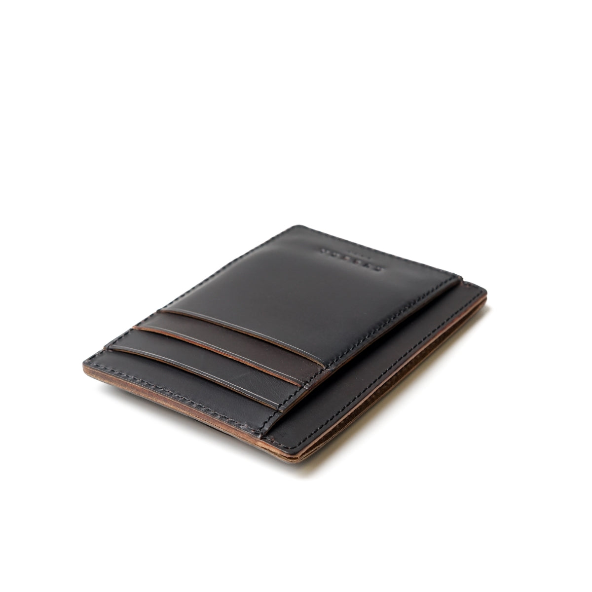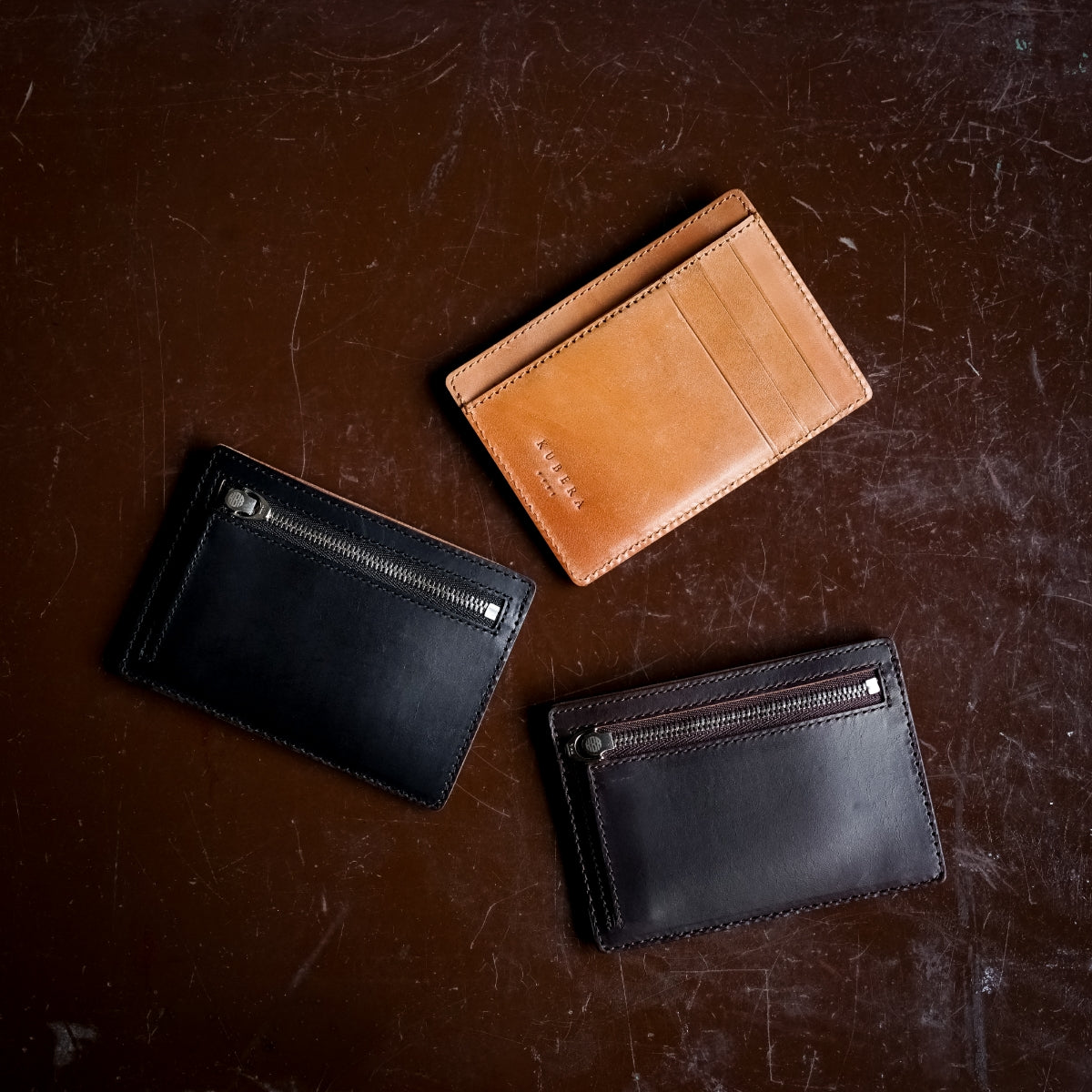 馬革の中でも堅牢性に優れた希少部位「ホースバットストリップ」で仕立てた薄型多機能カードケース。フラグメントケースとも言われる、必要最小限のカードや現金などを持ち運ぶための機動性・携帯性に優れたミニ財布です。
