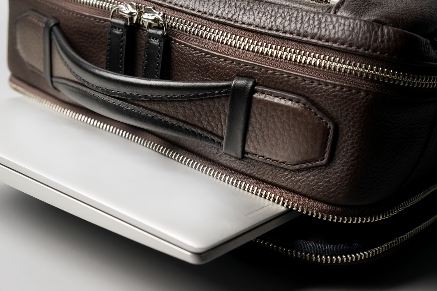 書類やPCの収納に最適化されたサイズと多彩な収納機能はスムーズな出し入れと細かな仕分けを可能にし、慌ただしいビジネスシーンをサポートします。背中側に設けたPC専用のコンパートメントはファスナーひとつでアクセスでき、クライアントの前や空港のチェックポイントでの所作もスマートでスピーディに。15インチまでのノートパソコンが収納できます。