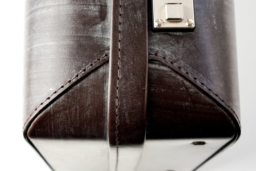 曲線的なフォルムを実現するのは高度な技術が要求されます。こんな些細なところにも長年に渡り研鑽された技術や経験値が活かされているのです。本体は伝統の二本針による手縫いで縫合されています。