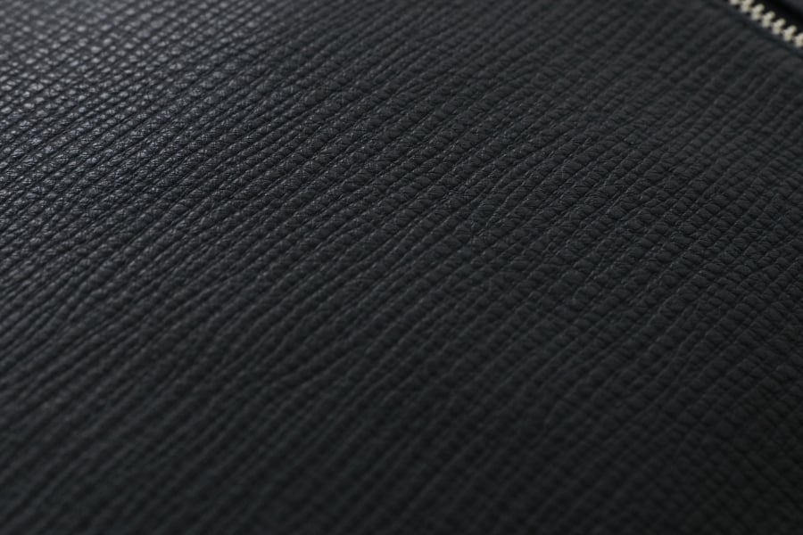 2度の型押しを行う技法で、1度の加工では表現し得ない複雑なシボ模様に仕上げています。従来の型押し加工より立体感があり、シュリンクレザーに近いようなふっくら感も感じるような独特な模様です。熟練の職人が、自身の経験と技術に基づいて、革の向きや圧力などを絶妙に加減して作り上げています。
