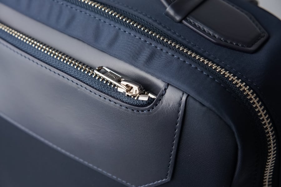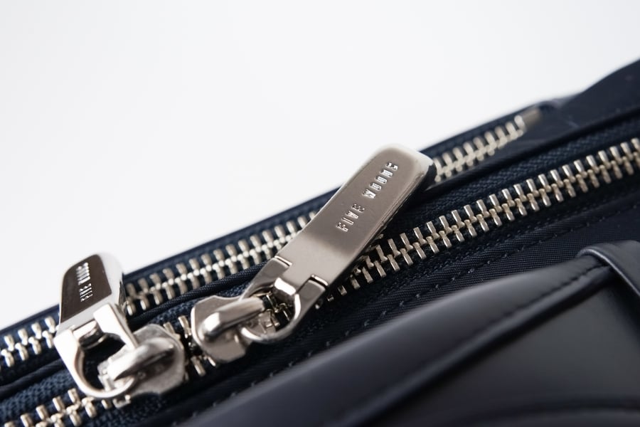 ファスナーにはYKK社製エバーブライト®を。美しい輝きが長期間持続します。流線形の引手は亜鉛ダイキャスト製のオリジナル。アクセントになるだけではなく掴みやすい形状は実用性も向上させています。