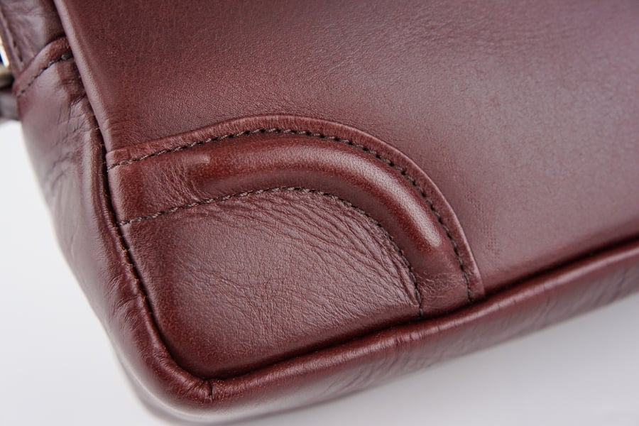 独特の立体的なフォルムを形成するためコーナーを補強。古来より強度の求められる馬具などに用いられてきた伝統的な技法で、長く使っても型崩れしにくい構造に。デザイン上のアクセントにもなっていますが、意味のある機能的なディテールなのです。
