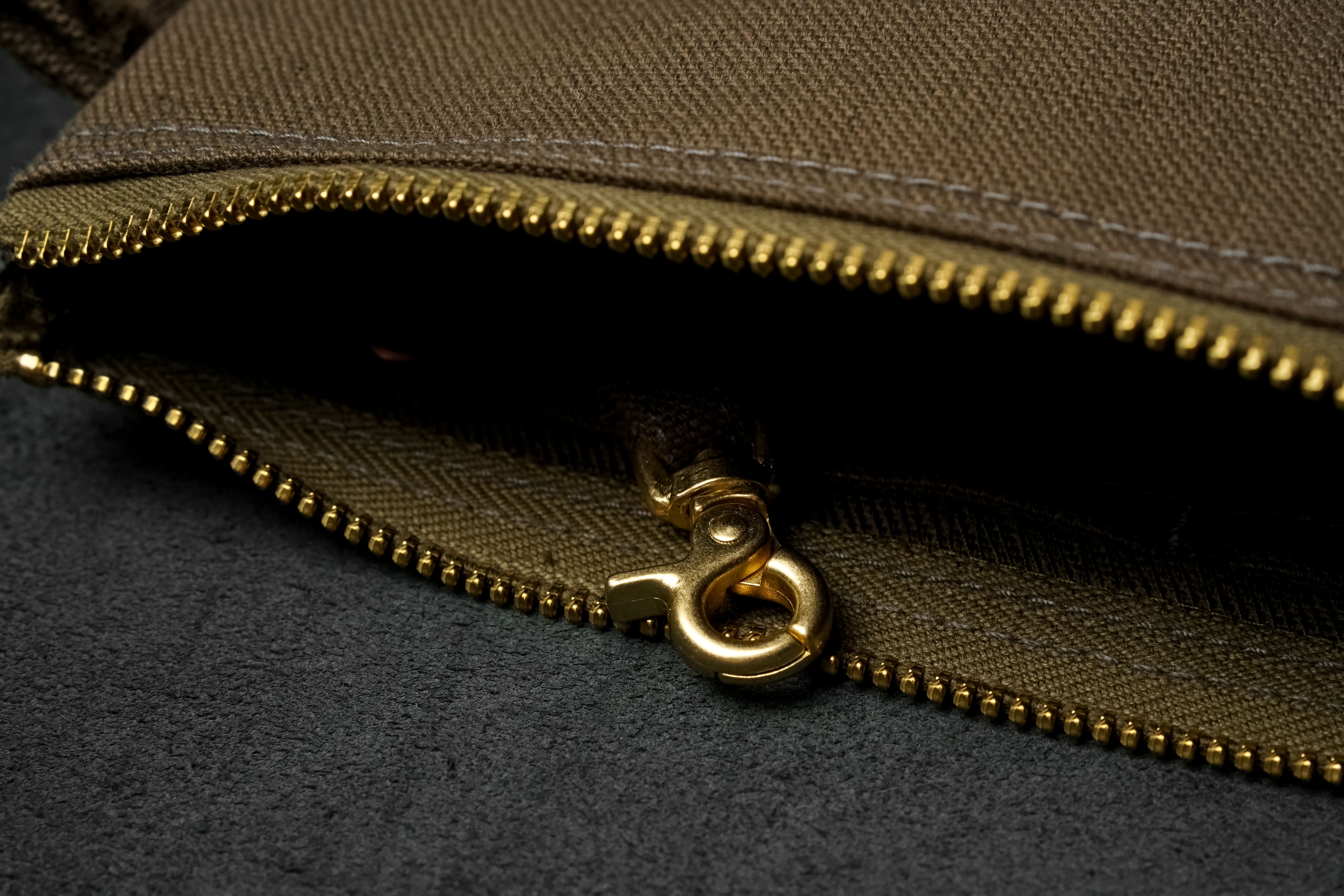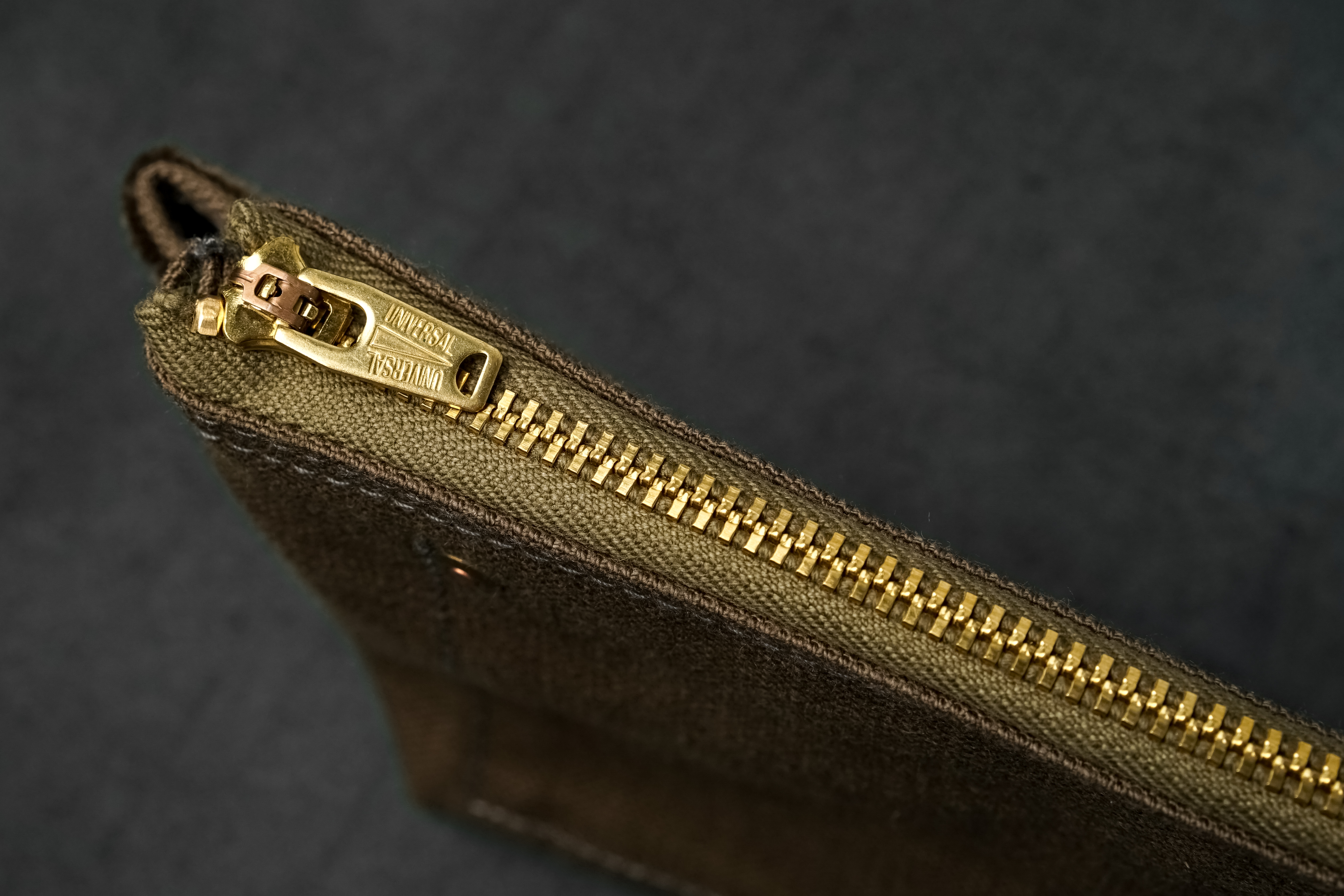 ファスナーには、1940年~1950年代のアメリカ製ファスナーを現代の品質基準で復刻したUNIVERSAL®(旧OLD AMERICAN®)製をチョイス。当時と同様の製法やコットンテープの採用などによりヴィンテージライクな雰囲気を醸し出し、小さな部品でありながらも外観に力強い重厚感を加えます。ダック素材にあわせて衣料用のロック機構付きスライダーを採用したり、真鍮やカッパーなど2色の素材を組み合わせたリベット使いや、バータックステッチなど細部に至るまでこだわりと遊び心が詰まっています。