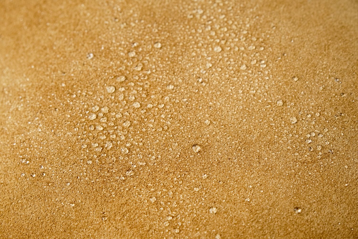 本体に使用したスエード素材は独自に開発したオリジナルウォッシャブルレザー。一般的に革は水に濡れると硬くなり劣化が進みひび割れを起こすことがありますが、本素材は濡れても硬くなりにくい特殊加工により、汚れが気になった時に気軽に水洗いする事が可能です。
