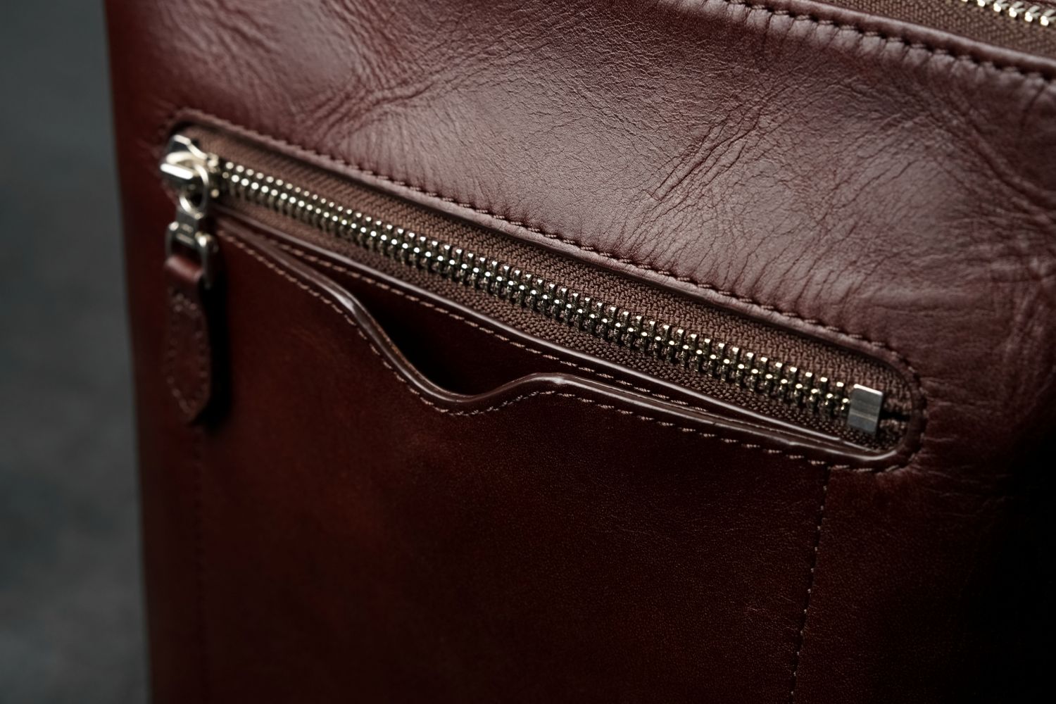 本体革は植物タンニンとクローム剤を混合した鞣しで、弾力性とソフト感を見事なバランスで仕上げたオイルドレザー。高い実用性を持ちながら、革らしい自然な風合いと手に吸い付く革らしいタッチ感を残しました。使うほどに色艶深く変化するエイジングを愉しむことができます。