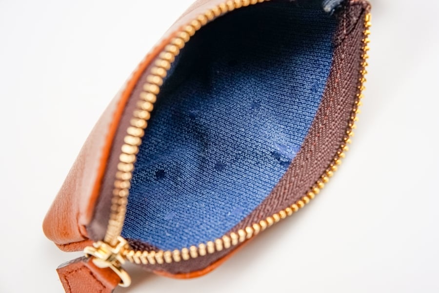 革の中に浸透したオイルと表面に施したワックス成分によって急な雨水をも弾きます。濡れたまま放置するとシミができてしまいますが、シミ跡が目立ちにくいのも特徴。 濡れた後は完全に乾燥させてからお手入れされることをおすすめします。