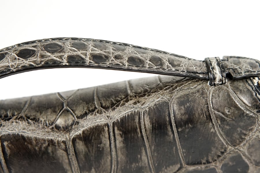 持ちやすく安心感のあるハンドルもクロコダイルで。シンプルなデザインにアクセントを加えながら実用性も向上させています。