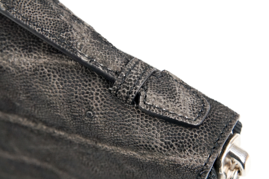 革には個体差が当然のように存在します。象革は部位によっても模様が異なりその表情も二つと同じものはなく、これこそが天然素材の証とも言われております。また、現在の染色技術では完全に色落ちを防ぐことはできません。