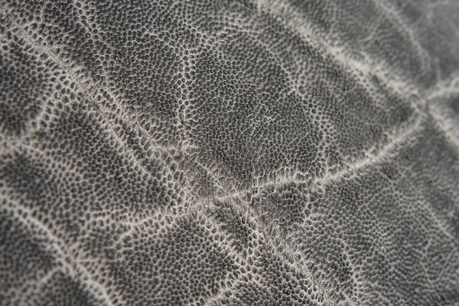 象革は市場にほとんど流通しない希少な素材です。個性的でワイルドな表情は他の素材に無いユニークなもので、水分や傷にも強い高い耐久性が特徴です。産地であるジンバブエで染色まで施されたものが一般的ですが、KUBERA9981では未染色のものだけを選定し、国内で独自のカラーに染め上げています。