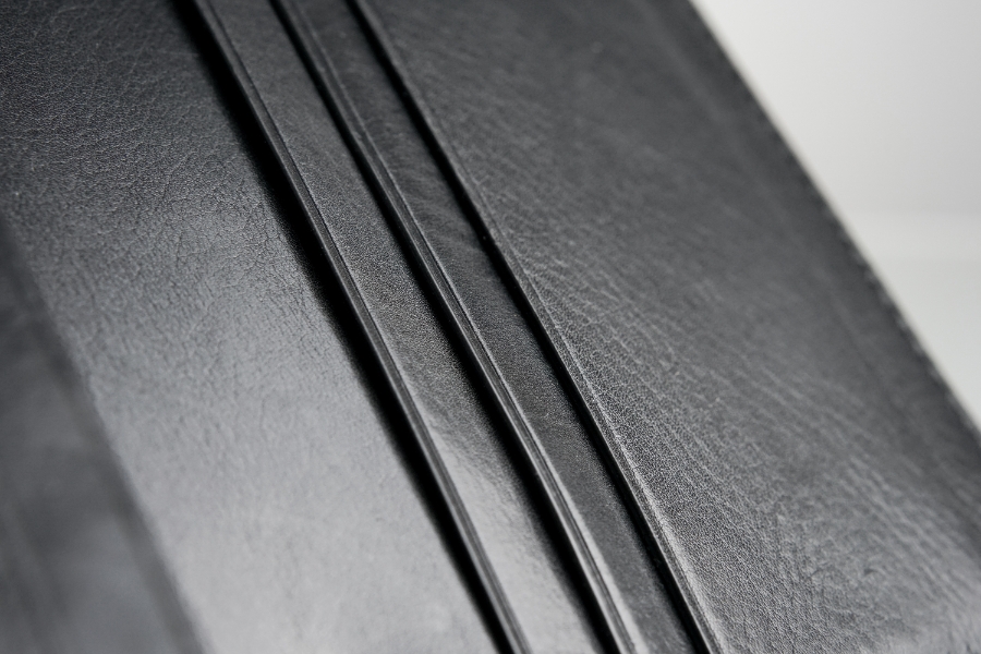 コバと呼ばれる革の裁断面は、何層にも重なる革が平らになるまで念入りに磨き上げてから、特性の樹脂を複数回に分けて塗り込み滑らかに仕上げています。手間のかかる製法ですが、これにより型崩れしにくく耐久性の高い製品となるのです。