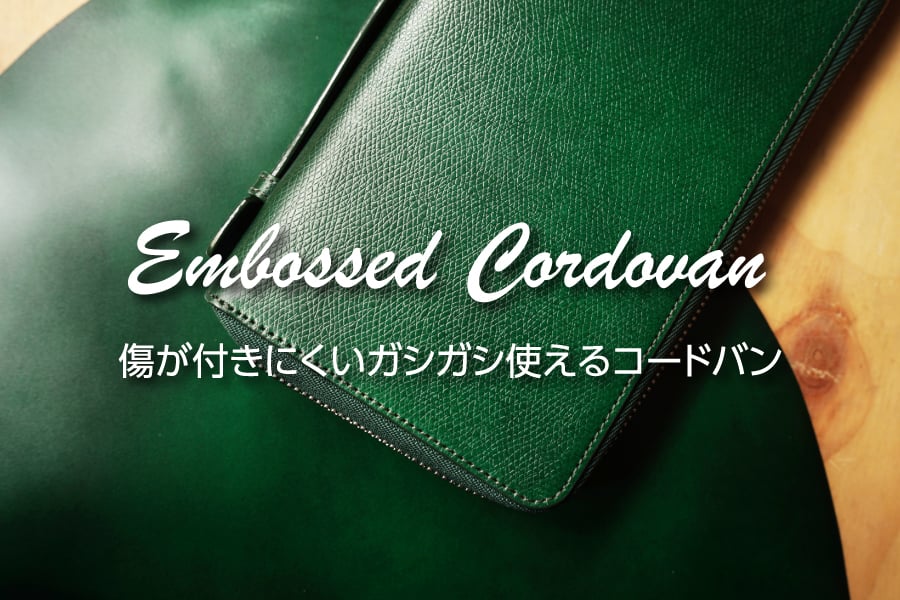 素材の特性上、傷や水といった耐性の弱さが語られることの多いコードバン。 あえて型押しをすることで、コードバンのデメリットを解消しました。 KUBERA9981の型押しコードバンは、傷がつきにくく、水にも強く、お手入れなしで使用いただけるのが特徴です。