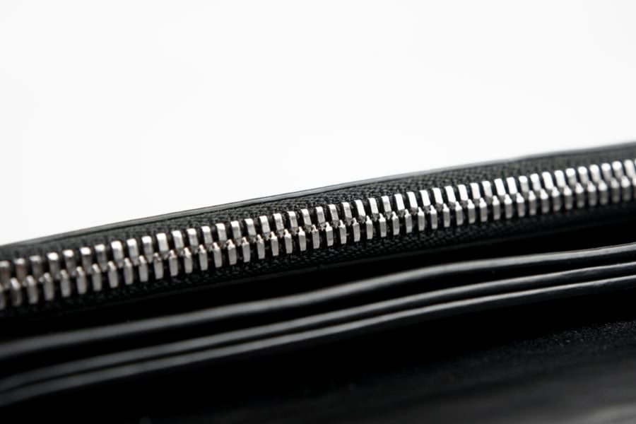 高品質を誇るYKKファスナーのなかでも最高級グレードとされる「エクセラ®」を使用。こちらはさらに「本金メッキ」を施した特別なタイプです。エレメント一つ一つに入念な研磨を施されたファスナーは美しく輝き、使うほどに滑らかに。噛み合わせも高精度で耐久性に優れており長くお使いいただくことが可能です。