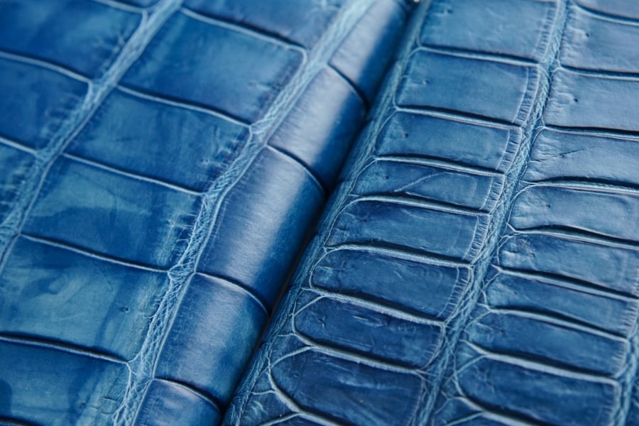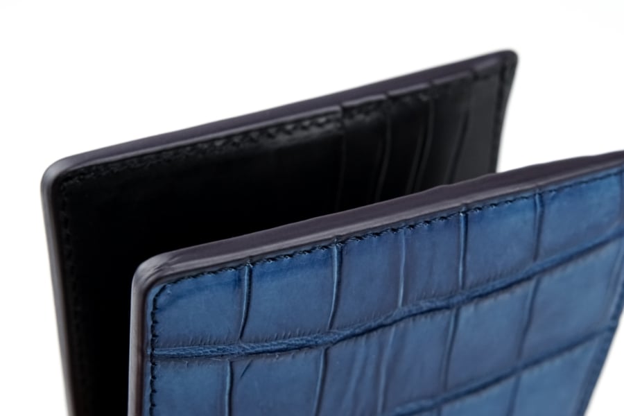 伝統的な「藍染」で染め上げたナイルクロコ。古来よりジャパンブルーと言われた、日本の美しい伝統色は使うほどに色艶深く変化します。