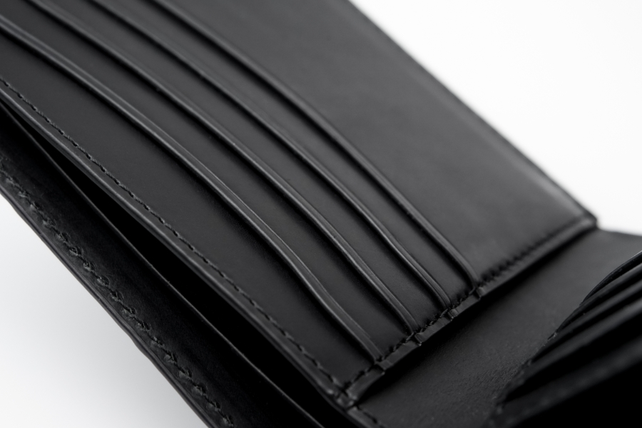 コバと呼ばれる革の裁断面は、何層にも重なる革が平らになるまで念入りに磨き上げてから、特性の樹脂を複数回に分けて塗り込み滑らかに仕上げています。手間のかかる製法ですが、これにより型崩れしにくく耐久性の高い製品となるのです。