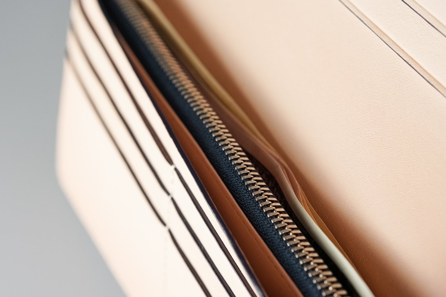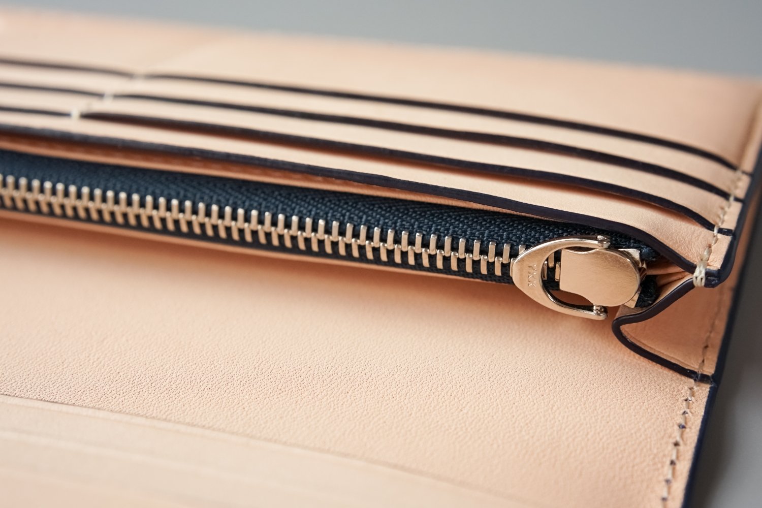 高品質を誇るYKKファスナーのなかでも最高級グレードとされる「エクセラ®」を使用。エレメント一つ一つに入念な研磨を施されたファスナーは美しく輝き、使うほどに滑らかに。噛み合わせも高精度で耐久性に優れており長くお使いいただくことが可能です。