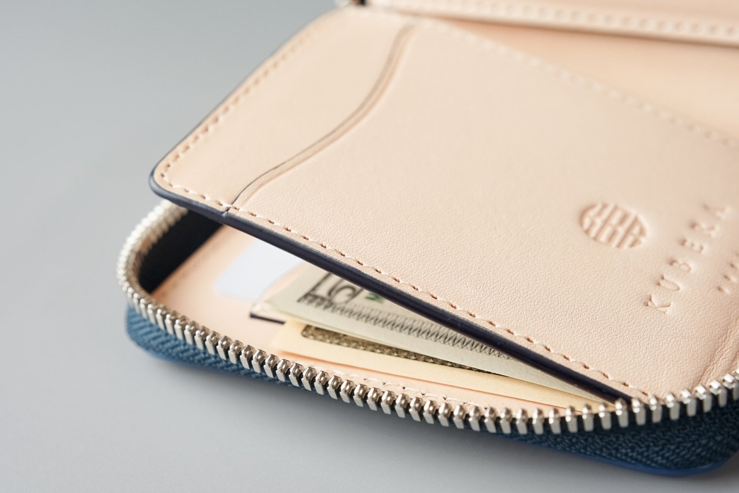 使い勝手を犠牲にせずにダウンサイジング。紙幣がジャストで収まるコンパクトサイズに抑えながら出し入れがしやすいサイドオープン設計にしました。
