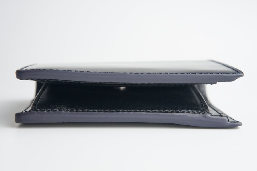コバと呼ばれる革の裁断面は、何層にも重なる革が平らになるまで念入りに磨き上げてから、特性の樹脂を複数回に分けて塗り込み滑らかに仕上げています。手間のかかる製法ですが、これにより型崩れしにくく耐久性の高い製品となるのです。