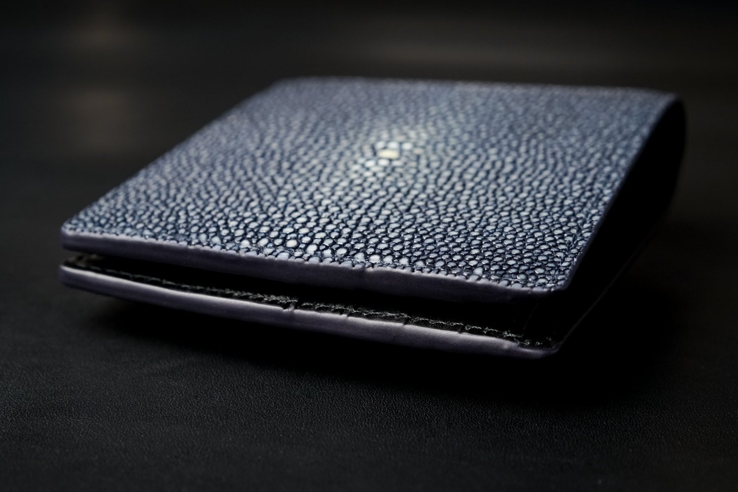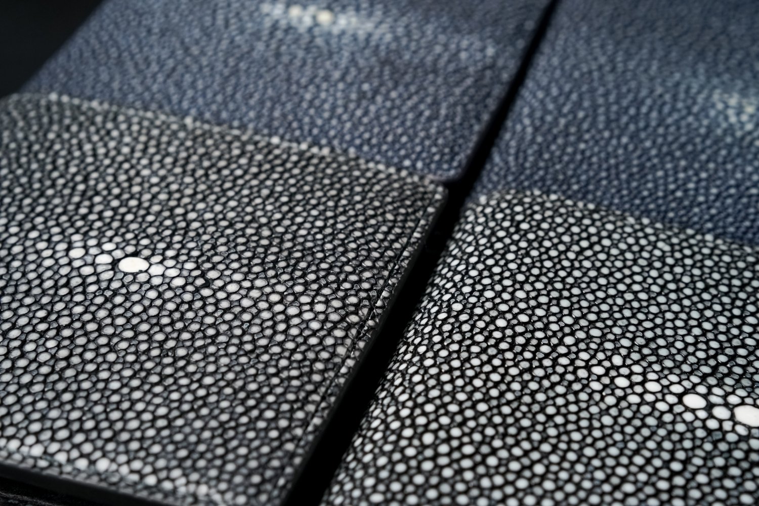 エイ革は丈夫で傷がつきにくく、型崩れも少ないのが特徴です。また、汚れもつきにくく、水にも強いため、お手入れ無しでも長期間の使用に耐えます。
