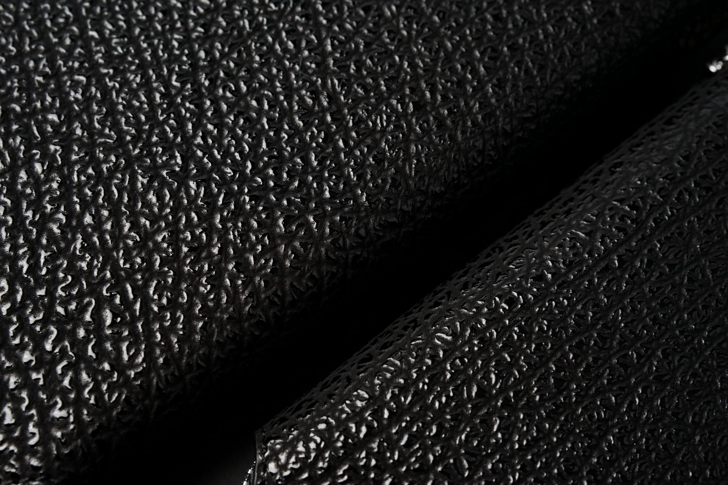 古くは戦国武将たちの甲冑に用いられたほど威厳と実用性を持つ「姫路黒桟革」。鞣しの技術と漆塗りの技術を融合させた、天然皮革の芸術品であり、漆の光沢が無数に散りばめられた宝石のように美しいことから「革の黒ダイヤ」とも呼ばれます。KUBERA9981ではこの特別な技術を、純国産エキゾチックレザーである鮫革に取り入れ、唯一無二の素材「鮫桟革」に仕立て上げました。