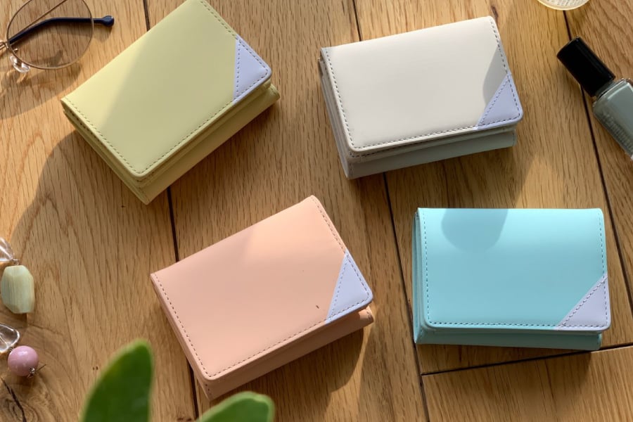 甘すぎないペールトーンで上品に仕上げられたL字ファスナー二つ折り財布。
