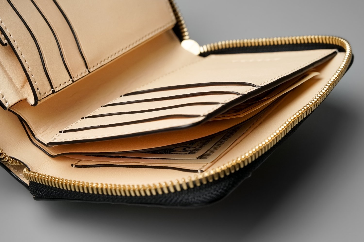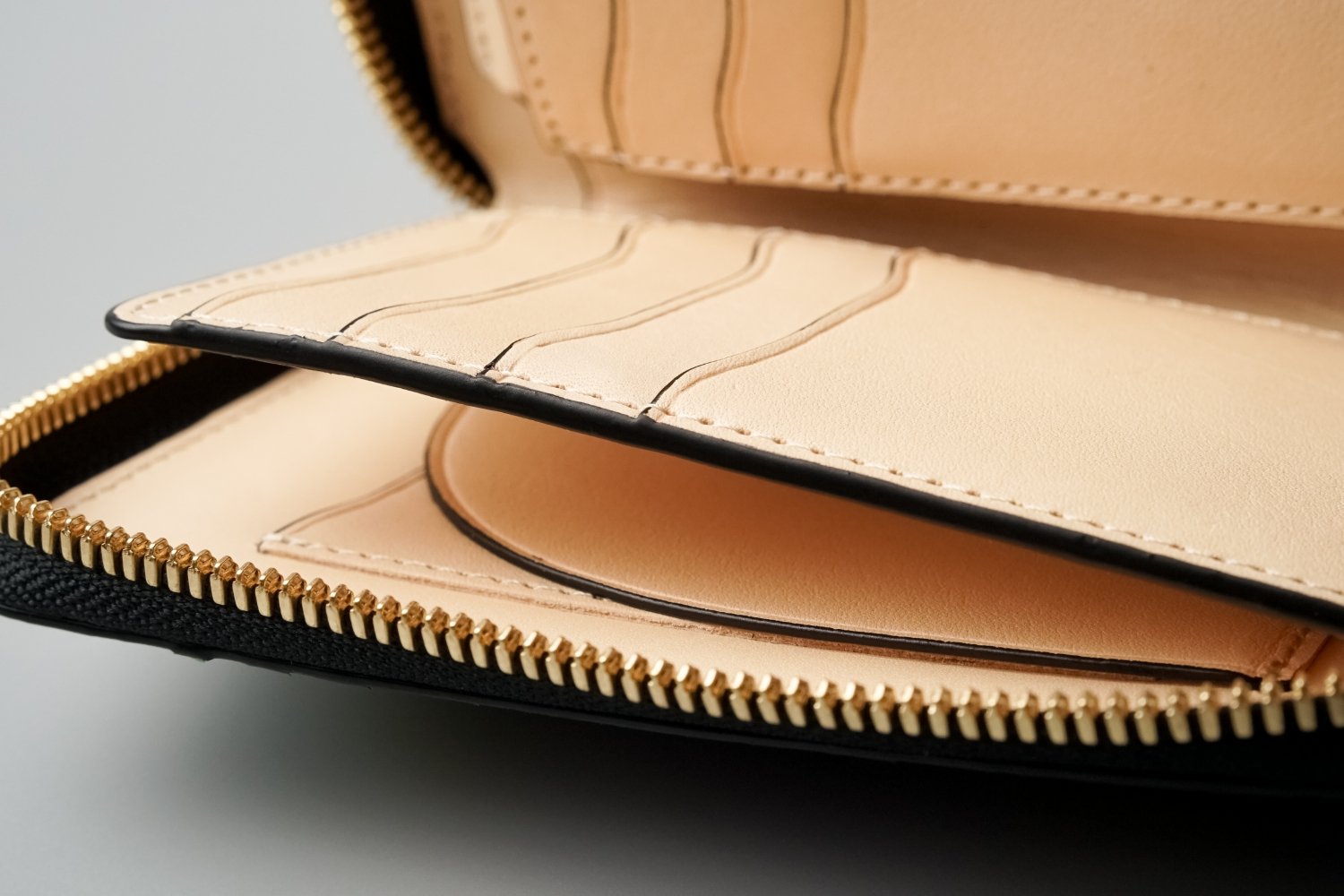 小銭入れのファスナーには高品質を誇るYKKファスナーのなかでも最高級グレードとされる「エクセラ®」を採用。エレメント一つ一つに入念な研磨を施されたファスナーは美しく輝き、使うほどに滑らかに。噛み合わせも高精度で耐久性に優れており長くお使いいただくことが可能です。