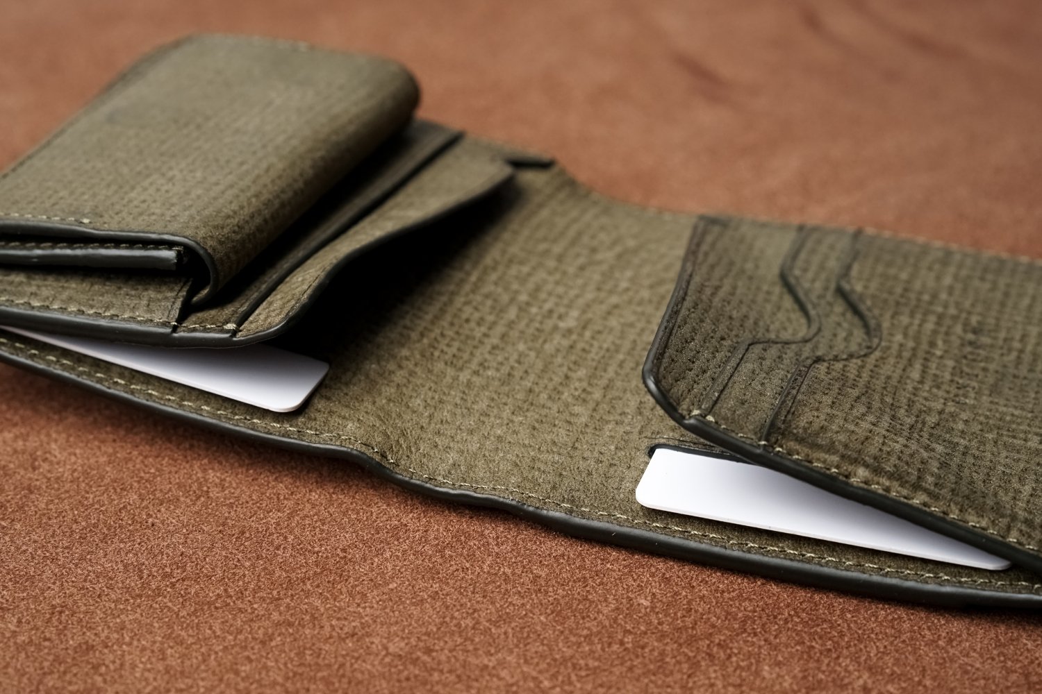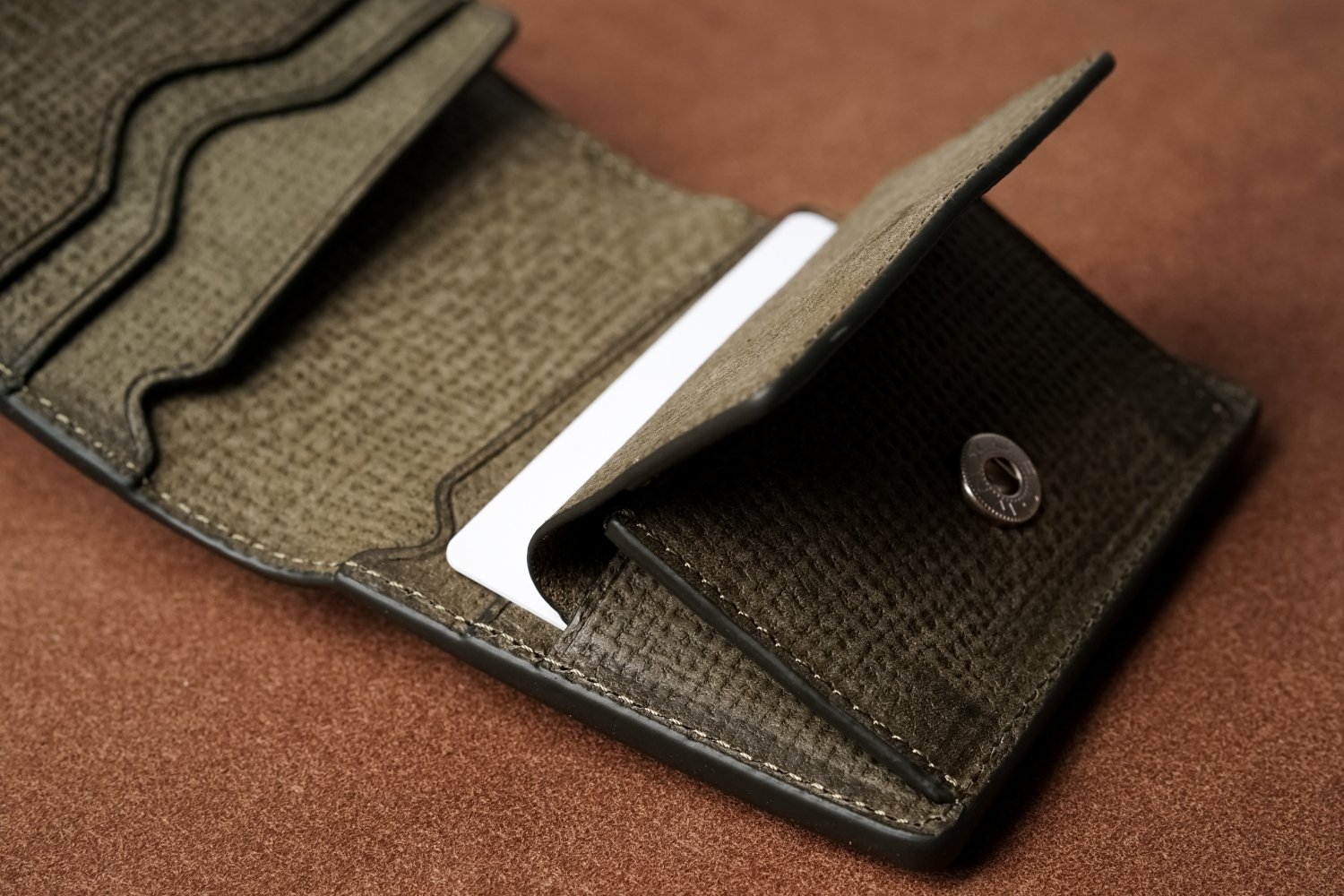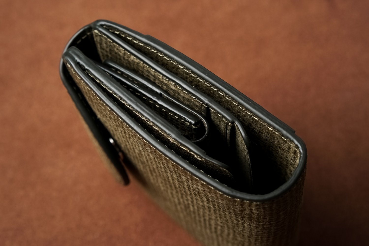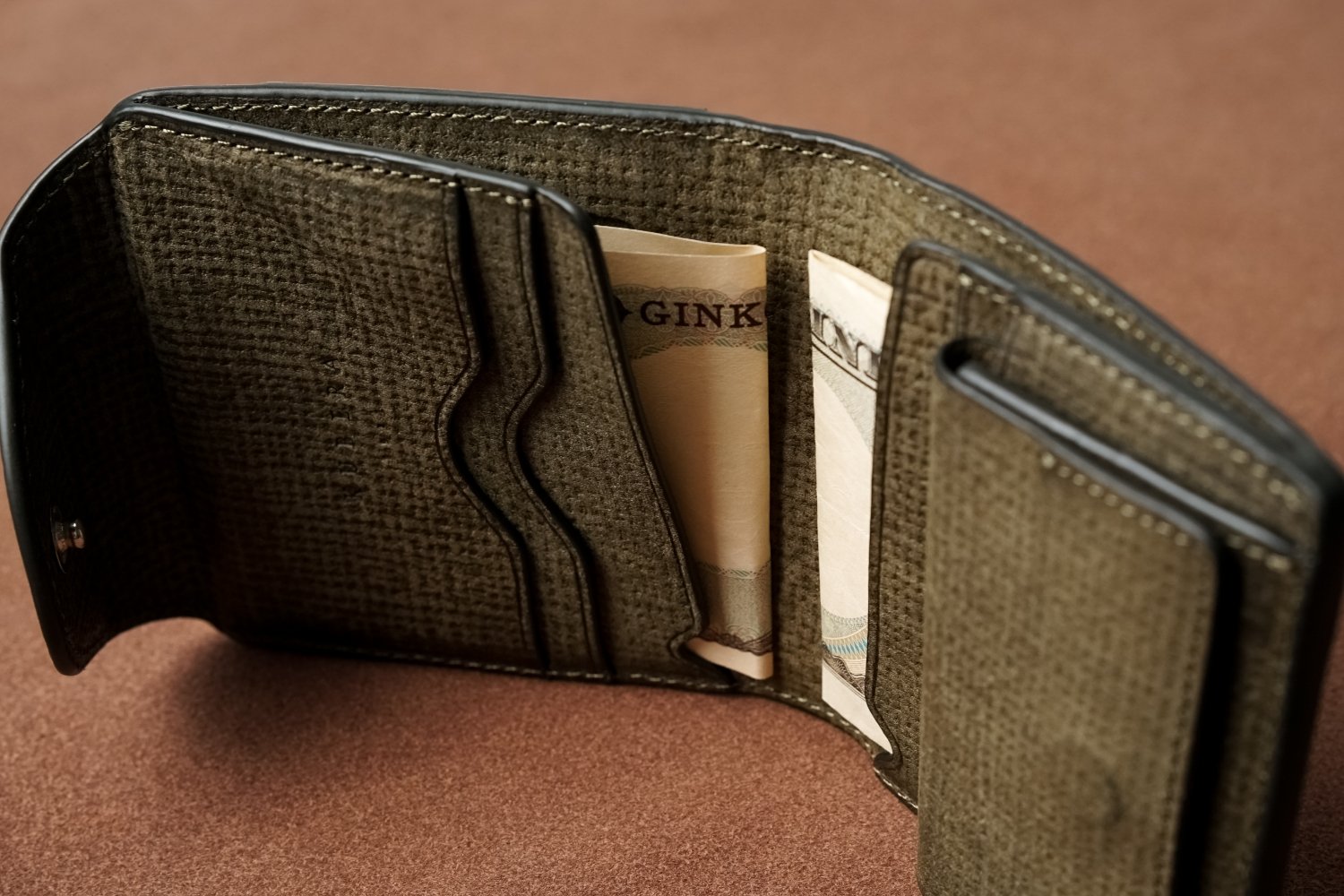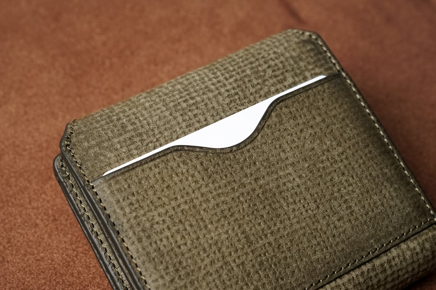 紙幣をさっと取り出せる札入れは、紙幣を二つ折りにして左右で仕分けるなど、使い方は自由自在にアレンジ可能です。