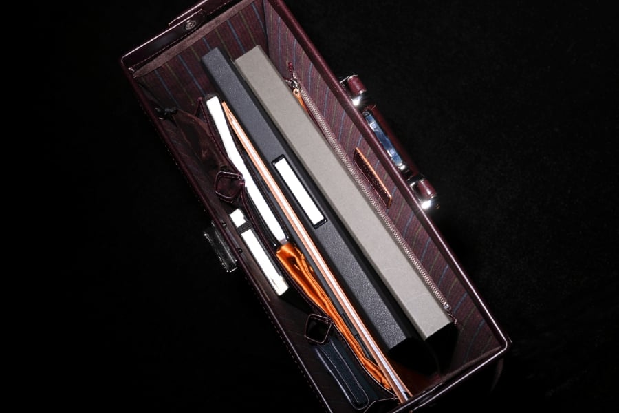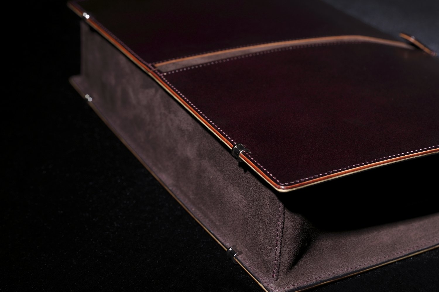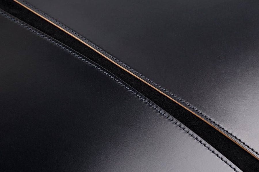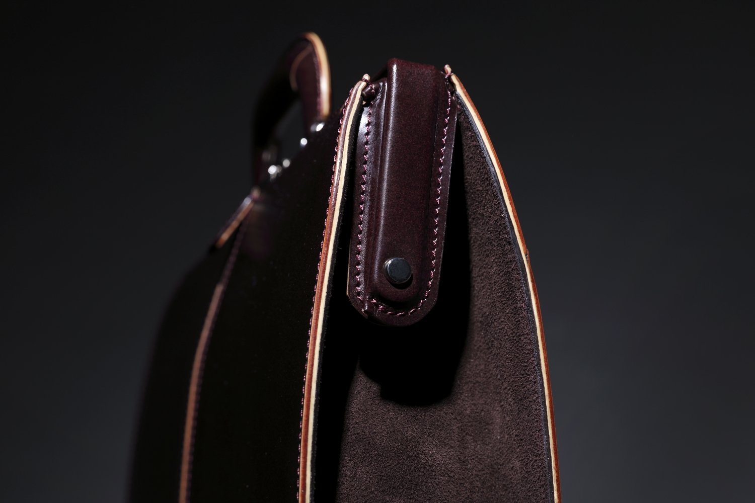 使用している素材は、植物タンニンで仕上げた牛革。表面をできるだけ平らにし、乱反射しにくいよう綺麗な面に仕上げることで、深みがある美しい艶が引き出され上品な印象に。