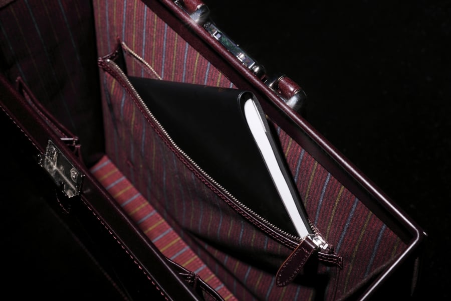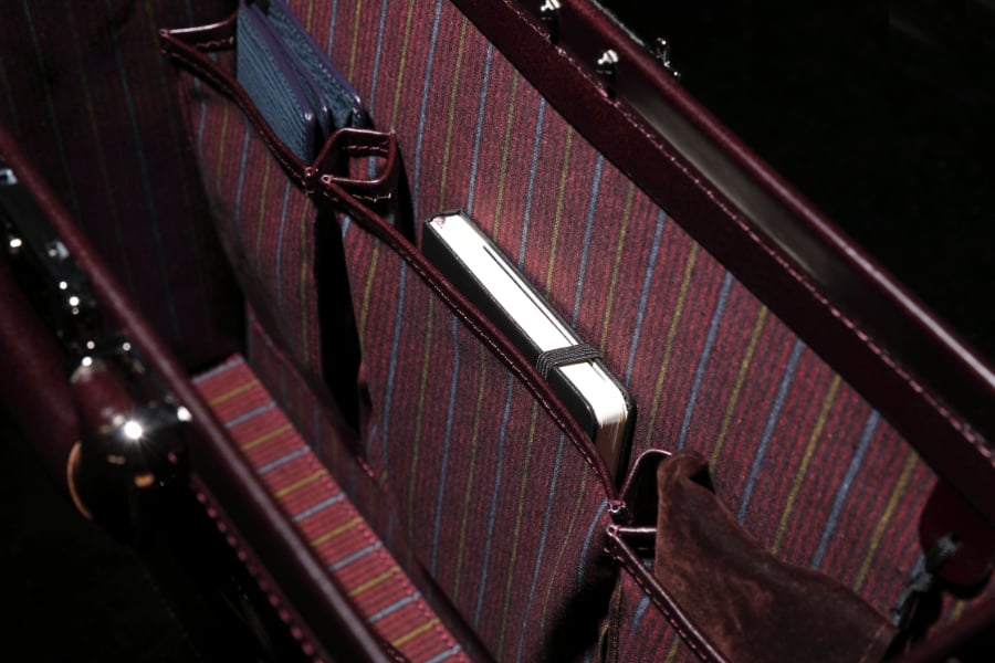 真上から中身全体が見やすいダレスバッグのフレーム構造により、必要なものがひと目でわかります。書類やノートパソコンの取り出しに手間取ることがなく、整理整頓された棚さながらの使い勝手で、外出先でもストレスのないスムーズな商談が可能。