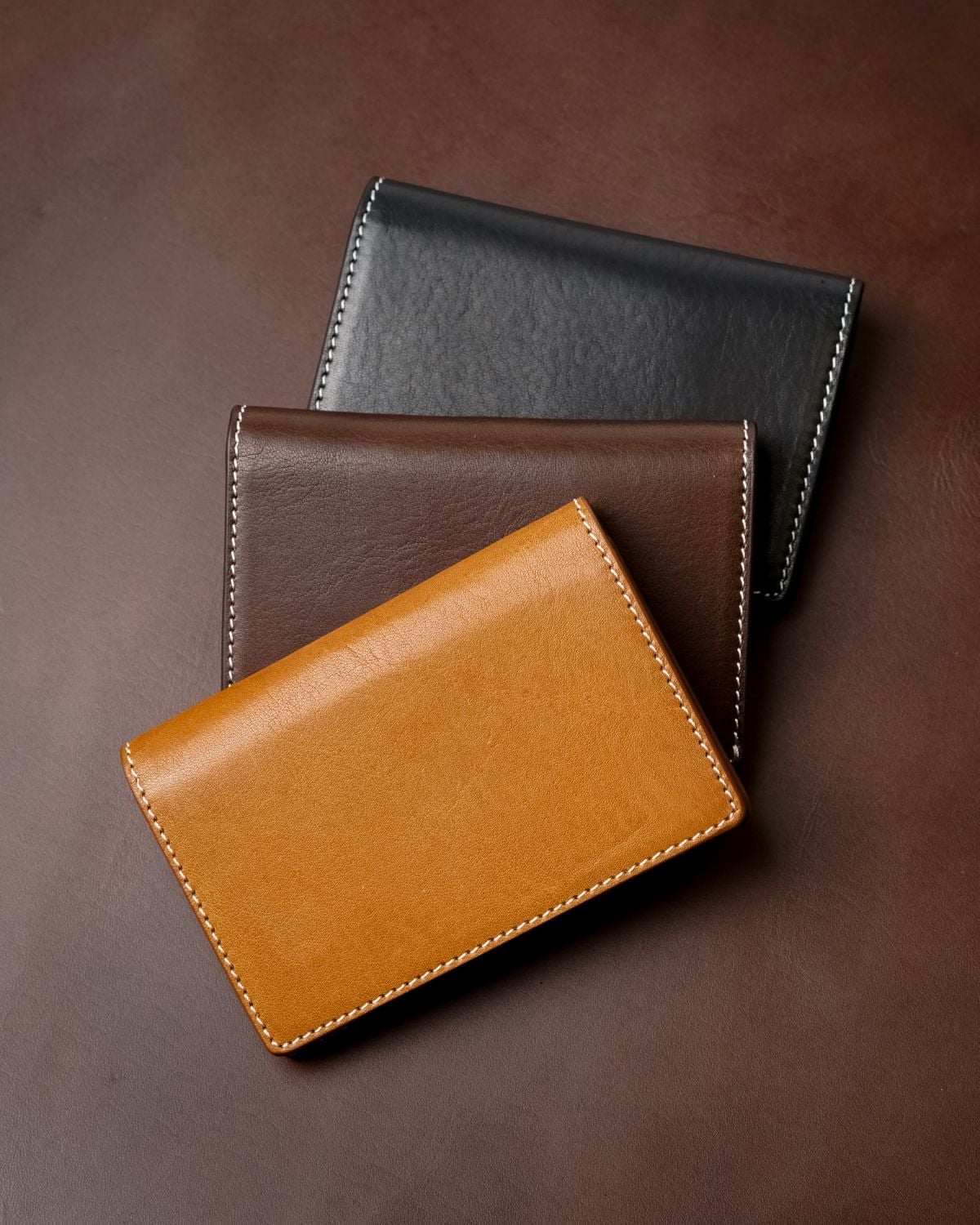 底部に丸みを持たせ厚みを抑えたササマチ仕様により掌やポケットに納まりやすく、コンパクトさと必要にして十分なキャパシティを両立。一般的な名刺15-20枚程度を収納できます。