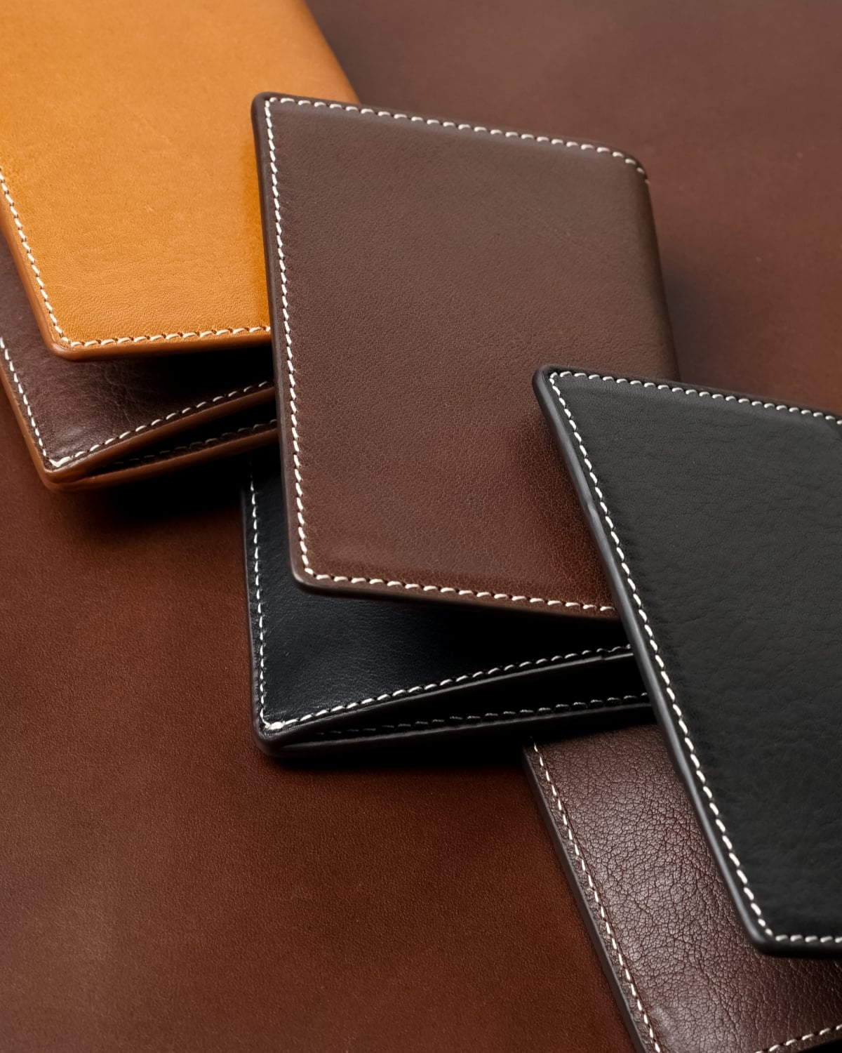 素材の風合いを活かした3色のカラーバリエーションを用意しました。使うほどに深く黒光りするブラック、重厚感と温かみを湛えるダークブラウン、最も変化の幅が広く育て甲斐のあるキャメル。それぞれ年月とともに美しいエイジングを見せてくれます。