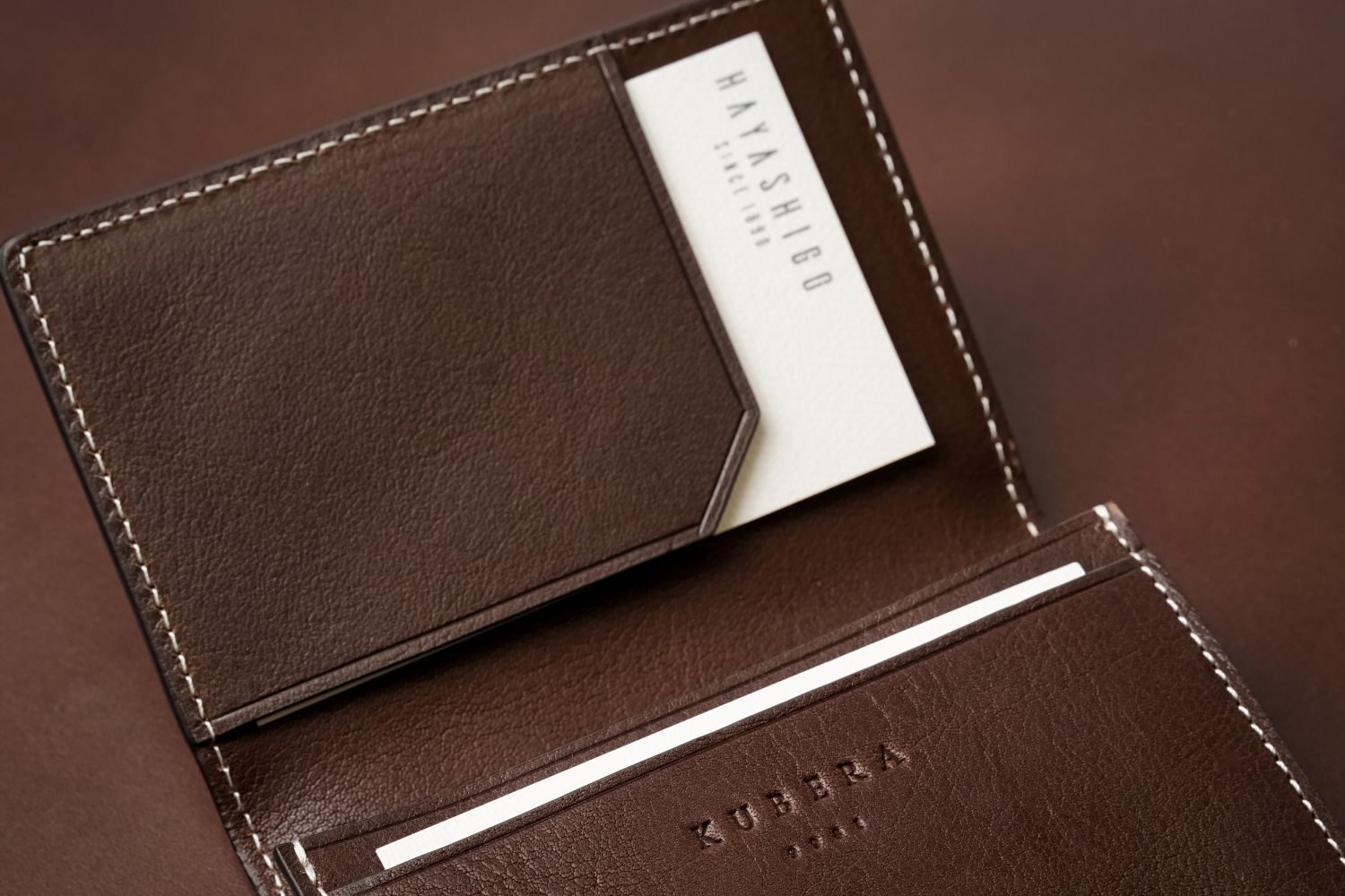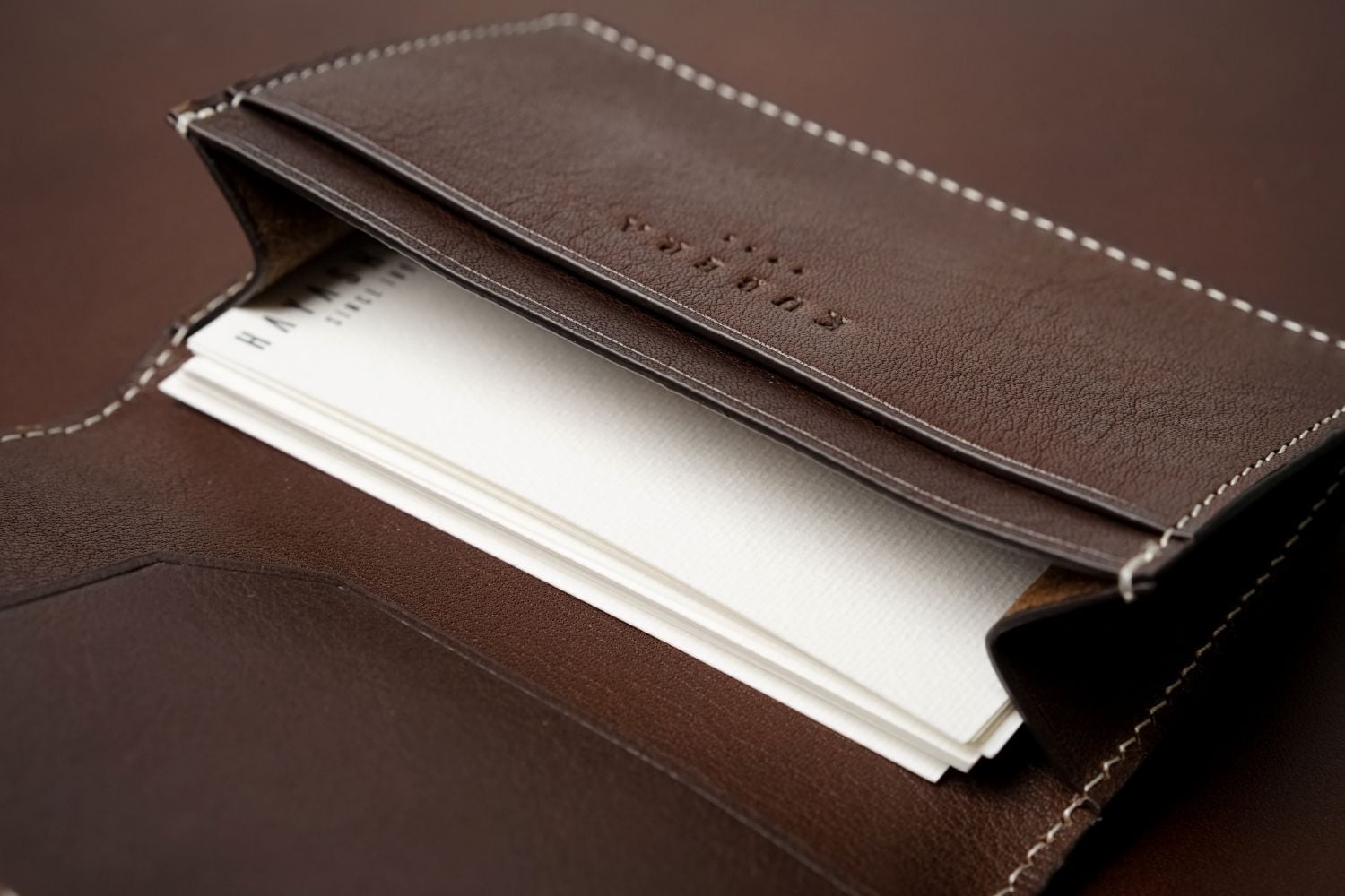 2か所設けたポケットには、いただいた名刺やさっと取り出したい自分の名刺など、あるいはいざという時の電子マネーなど、使いやすいように自由にアレンジ可能です。