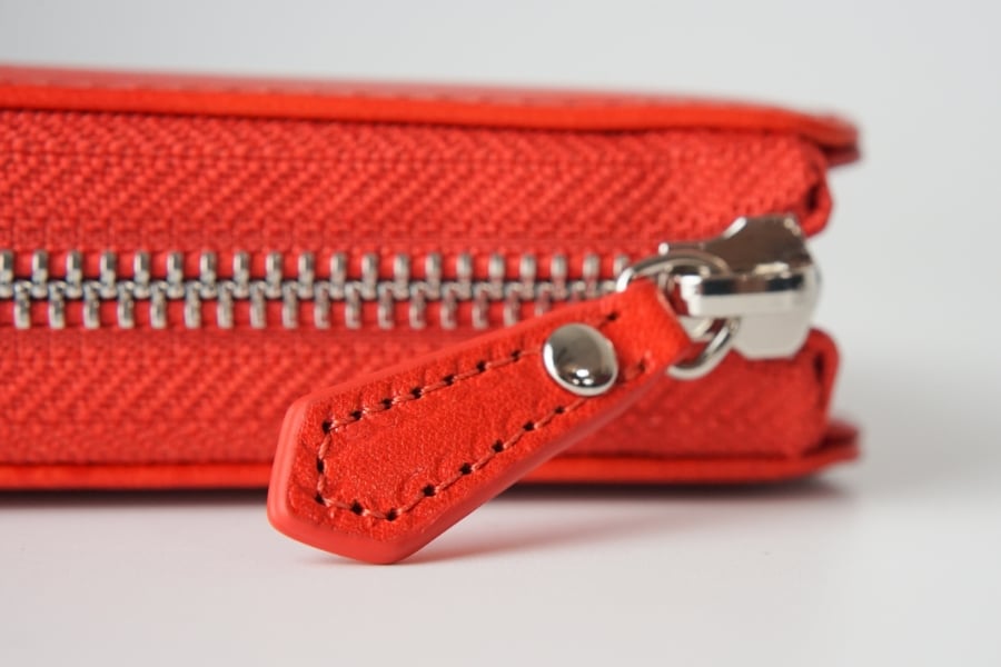 つかみやすい形状のファスナー引手は本体と同じくイタリアンレザー製。使うほどに手に馴染んでいきます。