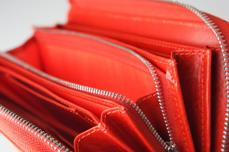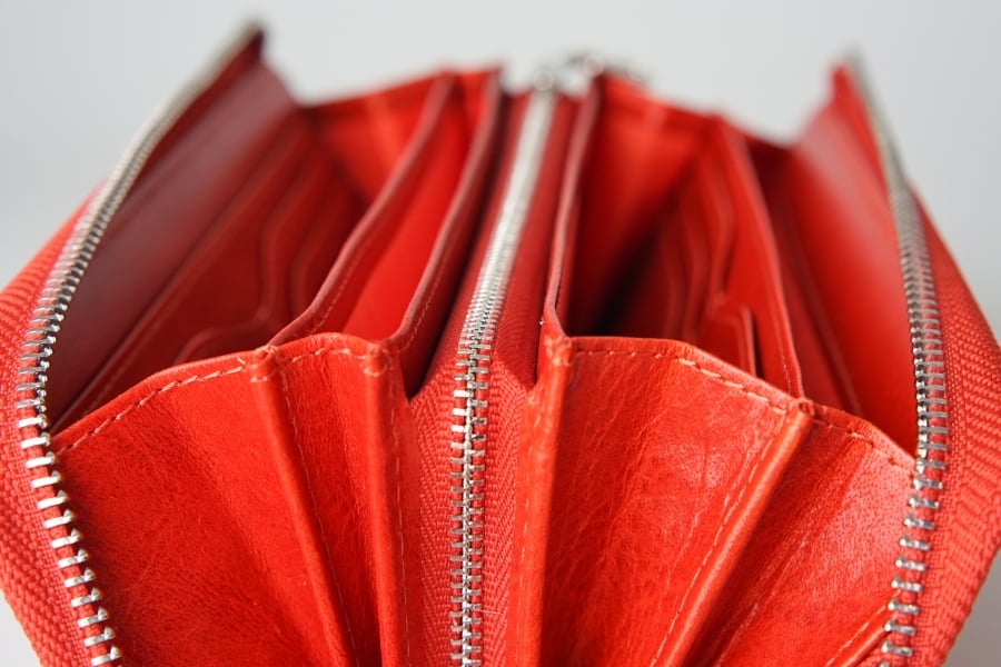 紙幣や通貨の種類によって、またレシートなど様々に仕分けができるよう大きさの違う札入れを4か所用意しました。すべてマチが付いているので見開きもよく、探しているものにすぐにアクセスできます。