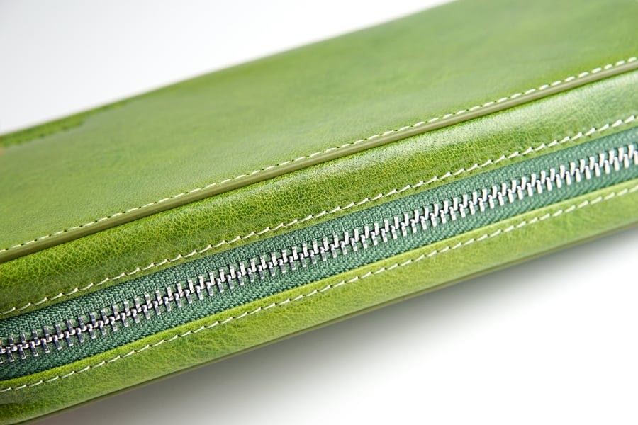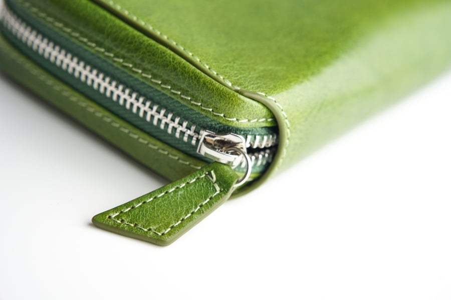つかみやすい形状のファスナー引手は本体と同じくイタリアンレザー製。使うほどに手に馴染んでいきます。