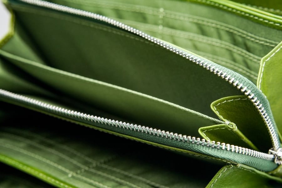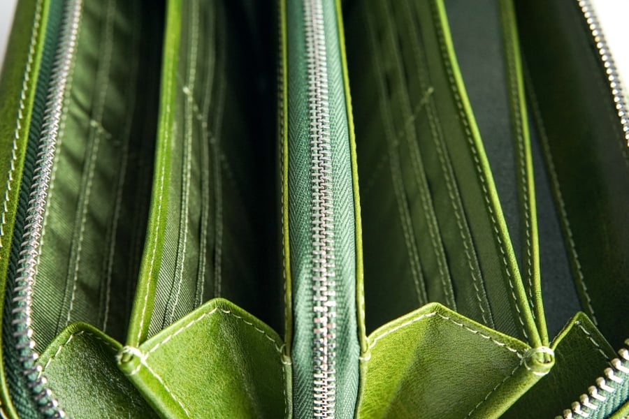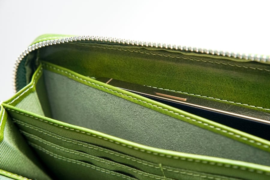 通常の財布と異なり、バッグのようにマチ幅を持たせたつくりで収納力に余裕を生み出しています。たっぷり収納しても型崩れしにくく、すっきりとした外観をキープします。