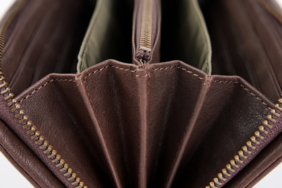 広めのマチが付いた札入れを4つ備えます。大きく開き使い勝手の良いアコーディオン構造です。