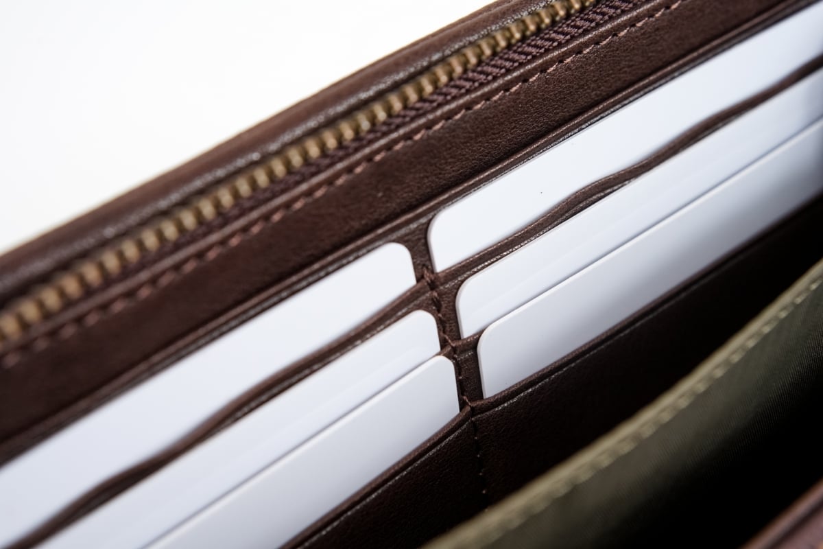 最もよく使うカードはセンターポケットに。居心地のよいレザー仕立てです。