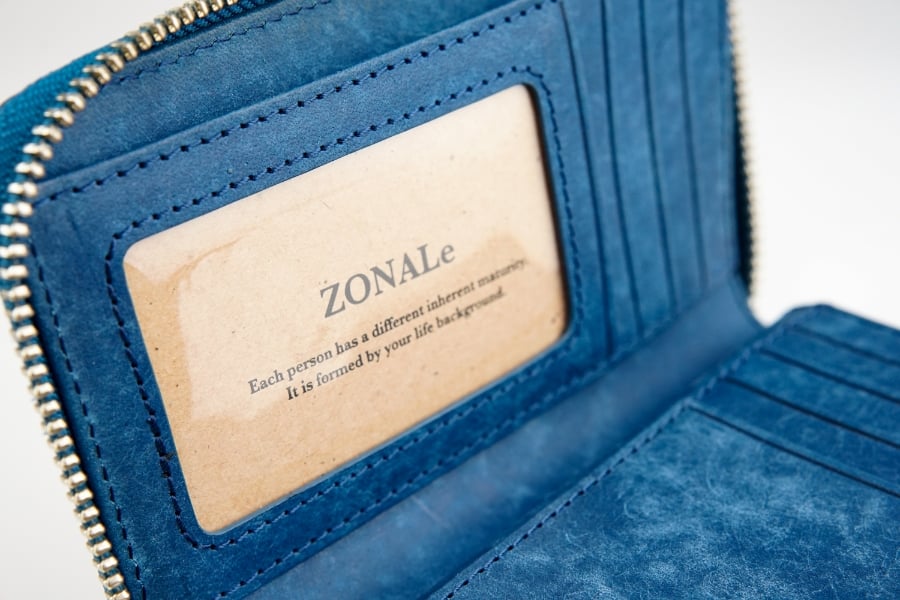 ナチュラルなベジタブルタンニン鞣しの牛革を使用。表面を特殊な工具で細かく削り独特の表情を醸し出しています。使うほどに色艶が増し経年変化が愉しめます。