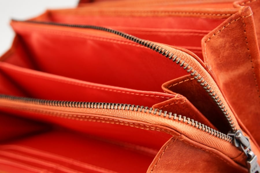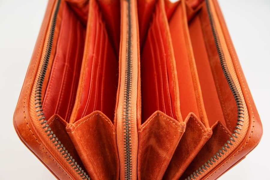 開口部が大きい小銭入れは仕切り付きで仕分けも便利。